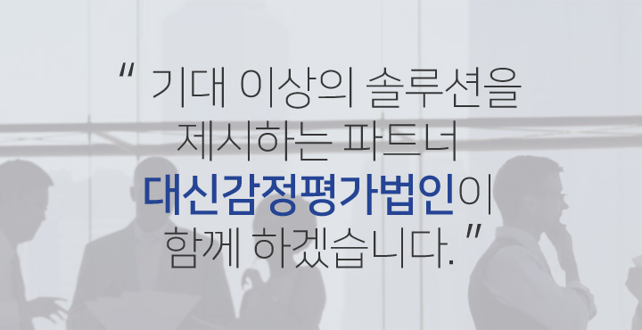 기대 이상의 솔루션을 제시하는 파트너, 대신감정평가법인이 함께 하겠습니다.